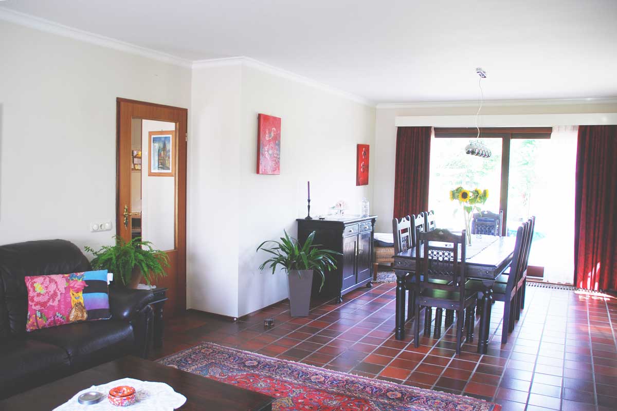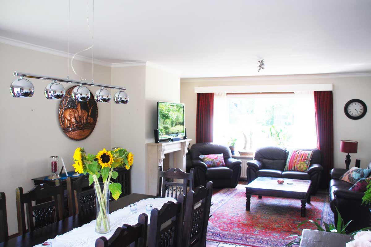 Een royale, fijne lichte woning, een woonkamer met open haard en schuifpui aan de achterzijde, separate keuken en een praktische berging. De woning heeft 5 slaapkamers en twee badkamers. Op de begane grond is tevens een praktische ruimte aanwezig voor zaken zoals een diepvries, wasmachine en droger. De woning is in 2004 geheel vernieuwd en van alle gemakken voorzien. Er is een vrijstaande stenen garage aanwezig met ruimte voor 4 auto's.